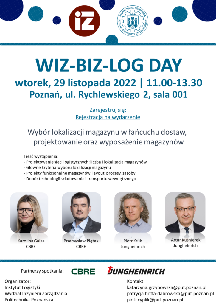 Dnia 29.11.2022 r. odbędzie się pierwsze seminarium biznesowe przy współpracy z firmą CBRE oraz Jungheinrich.